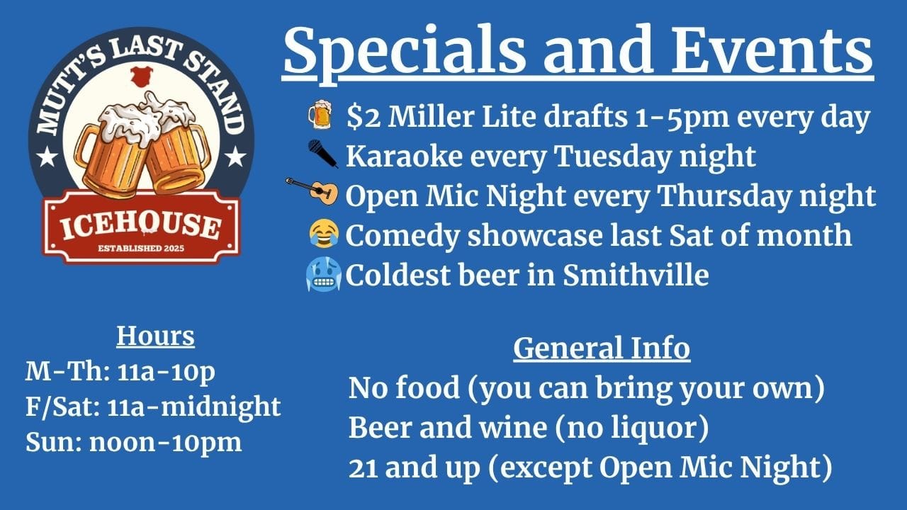 It’s Thursday in Smithville, and the parking lot at Mutt’s Last Stand is packed for Open Mic Night. Signups started at noon, and drew a mix of country singers, comedians, and even a soon-to-be-published poet.