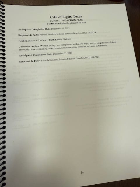 “We recommend that the public get acquainted with the facts prior to posting or reposting information on social media. The City of Elgin recently conducted an audit of the City's finances for fiscal year 2023. The audit was presented to City Council in an open meeting on October 21, 2025. The discussion from the meeting and the audit are both posted on the City's website, elgintexas.gov.