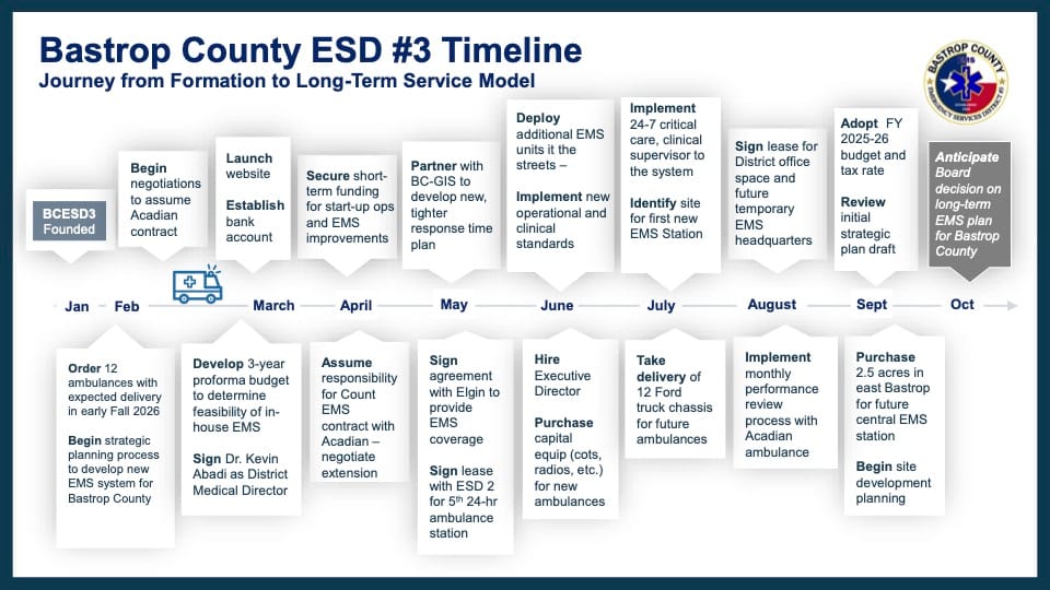 Smithville residents are seeing shorter wait times for ambulances after more units were added to service Bastrop County this summer. The increased capacity was part of Bastrop County Emergency Services District No. 3’s contract negotiations with Acadian Ambulance to address strained emergency medical services across the county.