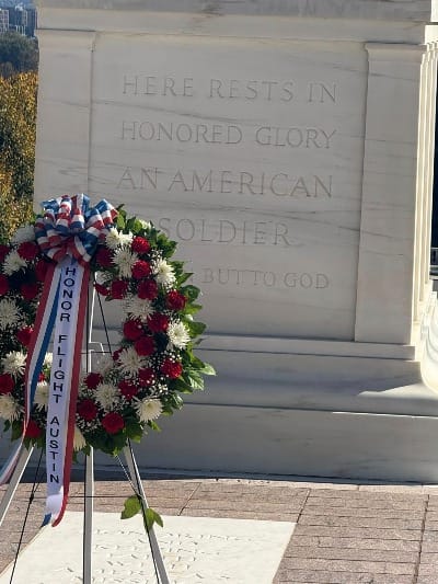 This wasn’t just laying any wreath, at any spot. Inman, along with three others from the Honor Flight, was given the opportunity to walk on the sacred ground around the Tomb of the Unknown Soldier.