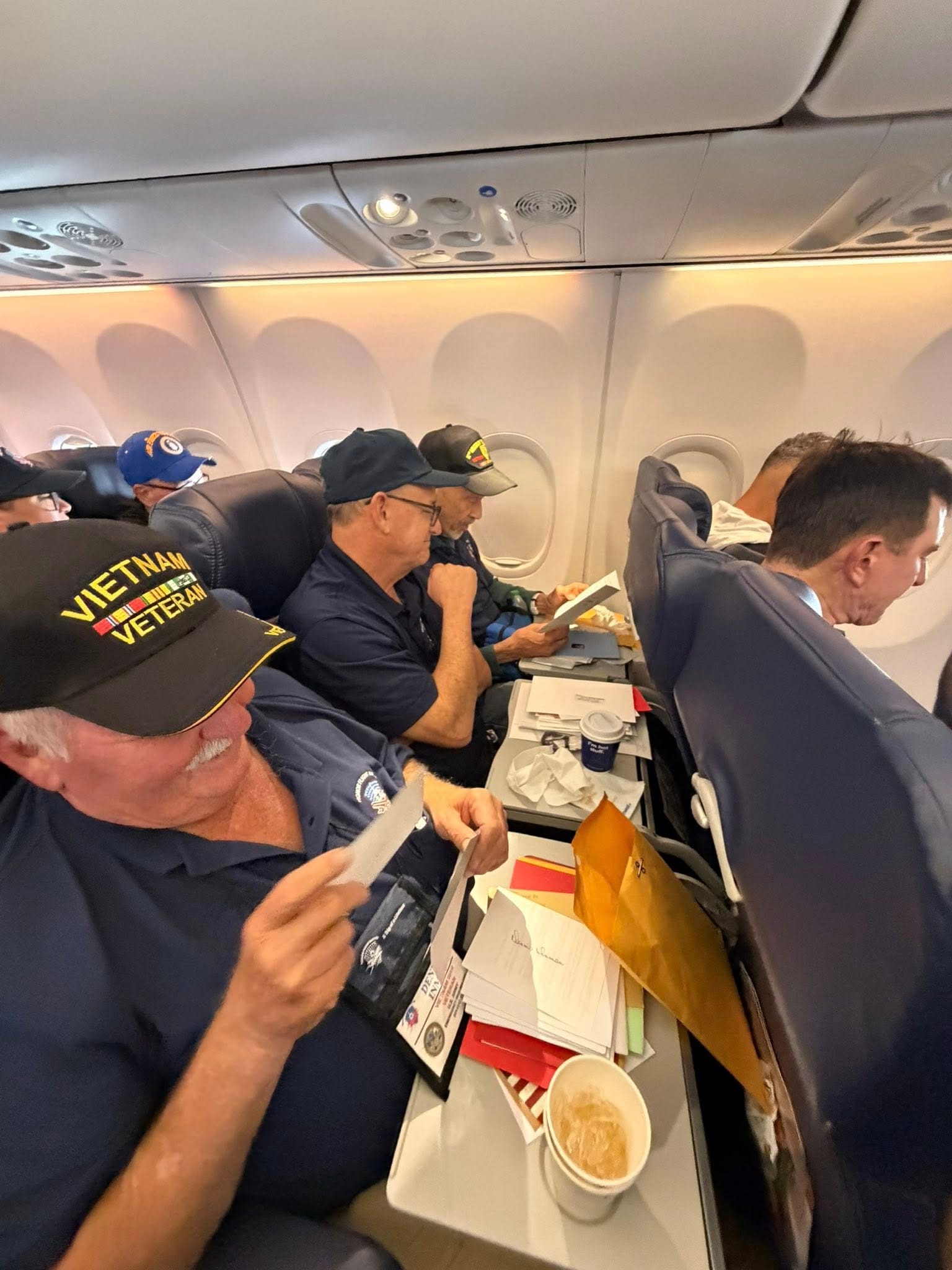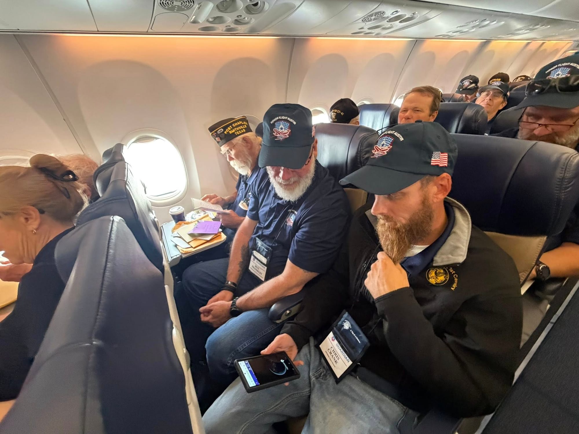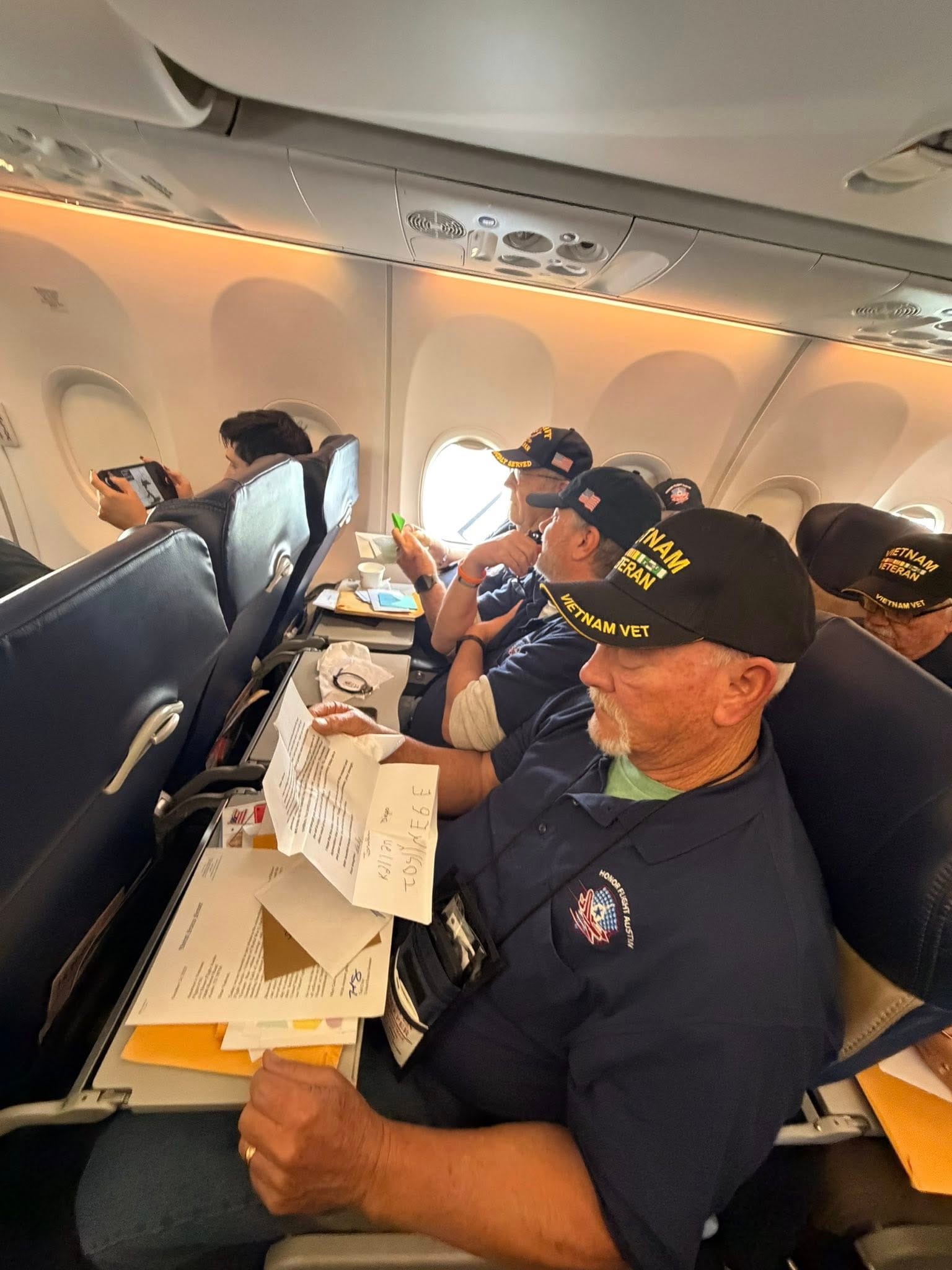 About an hour into the Honor Flight back to Austin, the organizers yelled, “Mail Call” and began handing out manila envelopes to each of the veterans. It had been over 50 years since they had participated in the ritual, but everyone remembered it.