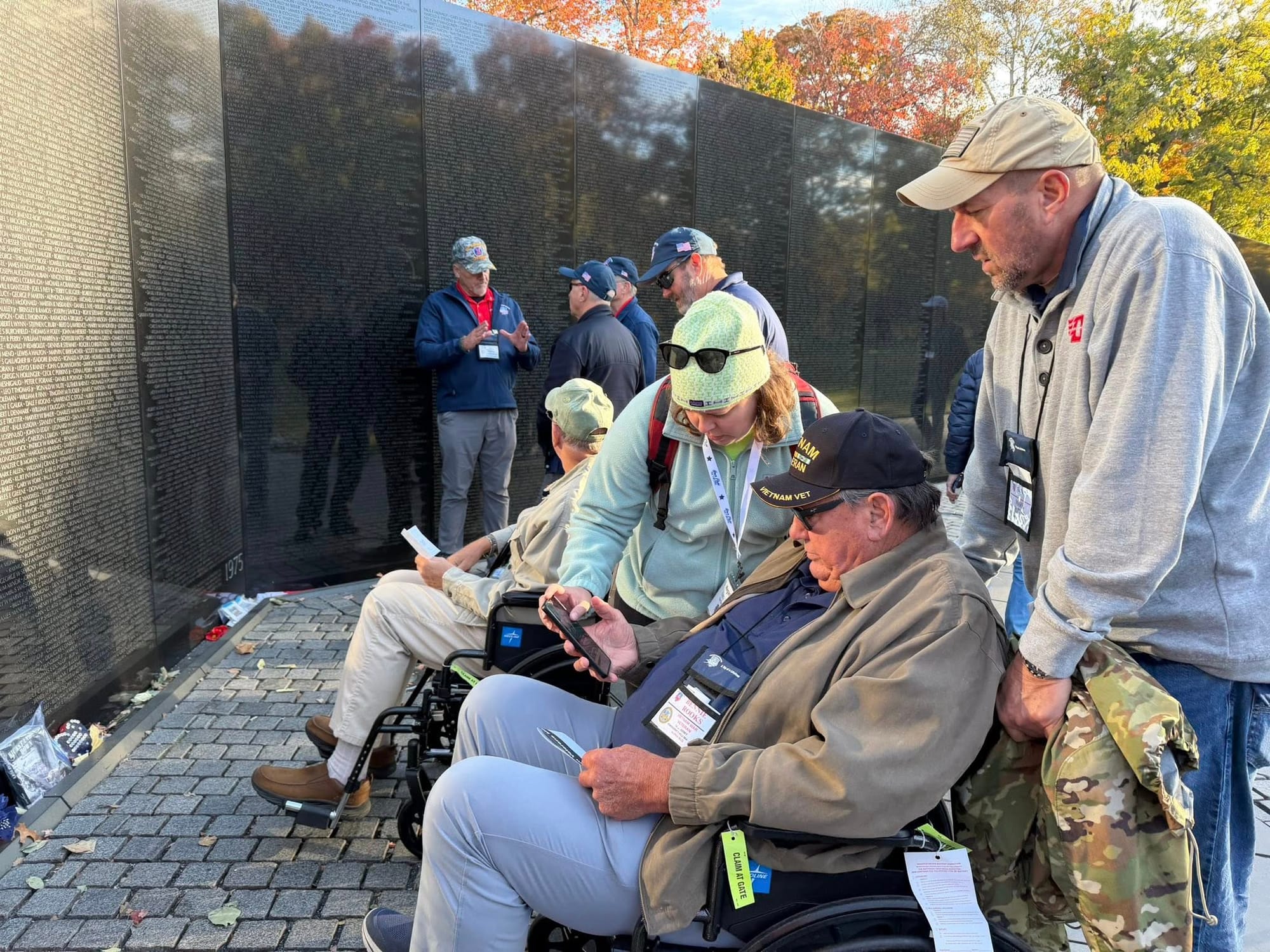 The Smithville group spread out along the long black granite wall, each one taking in their own experience. For Peeper, that led him to find a cousin who was killed in action.