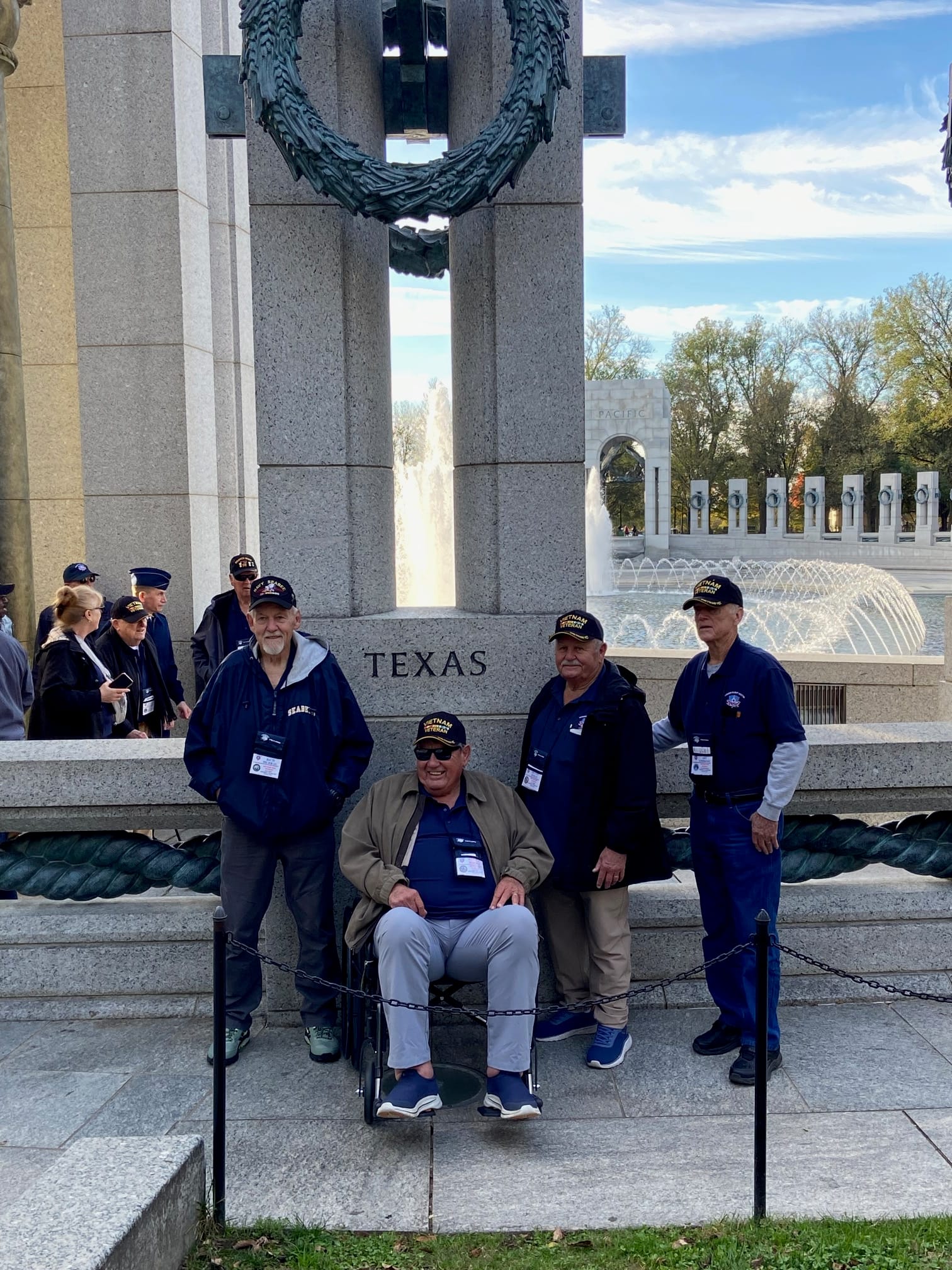 This story is about six Smithville-area Vietnam War veterans (Steve Peeper, Dennis Inman, Bennie Rooks, Rich Murray, Art Ambrose and James Windom) Honor Flight Austin trip on Oct. 24-25. Please read our pre-flight story from Oct. 24 here to get some background on the trip.